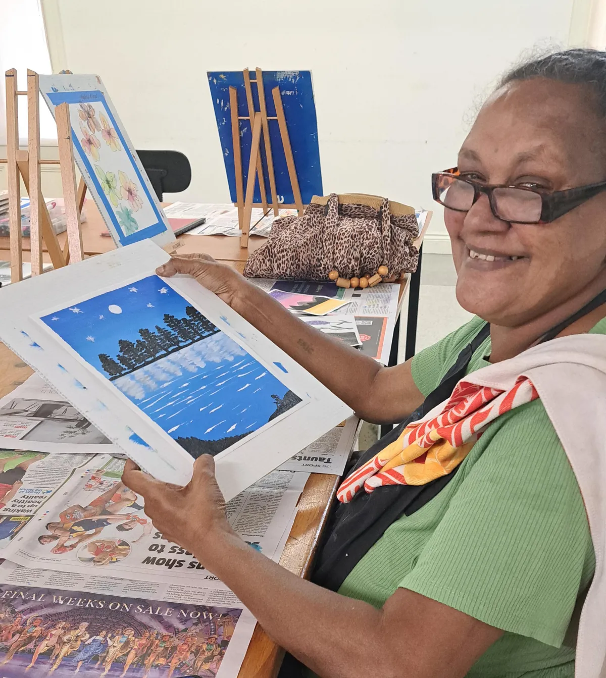 Participants may naturally develop art skills, but the focus remains on using creative practices to support wellbeing and daily life outcomes, supported by evidence in the arts and health space.